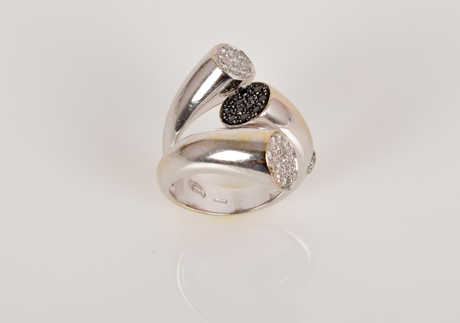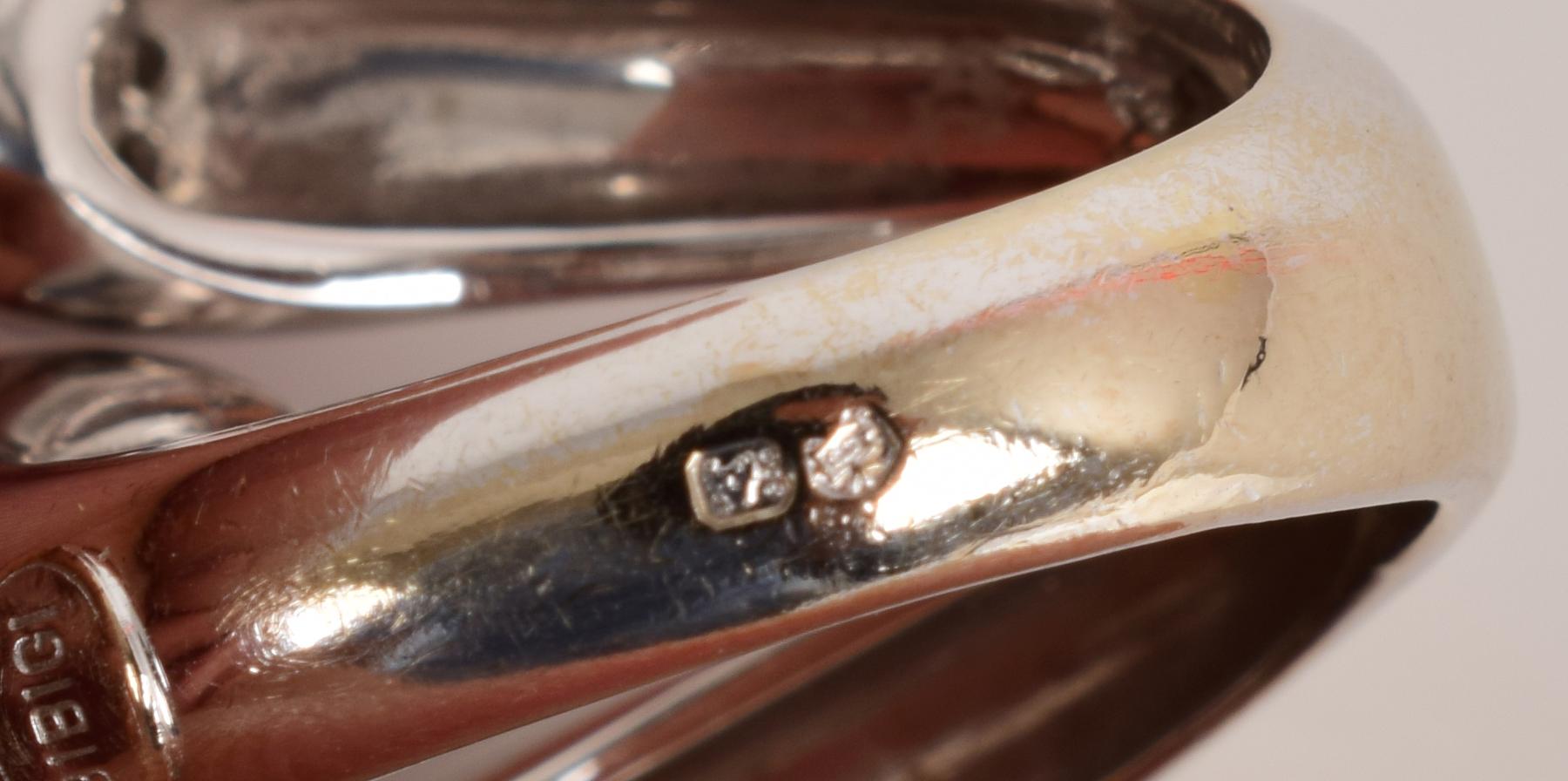 - cravejado com doze diamantes negros e vinte e cinco incolores com o peso total aproximado de 0,74 ct.