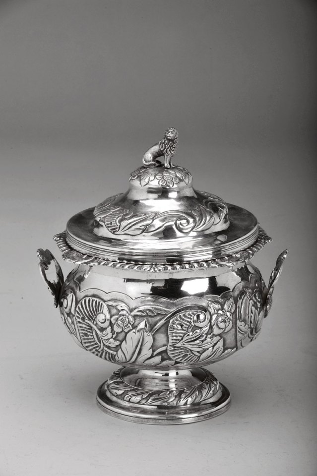- pomo da tampa decorado com escultura em vulto perfeito "Leão", marca de ensaiador do Porto (1853-1861), marca de ourives de (1836-1861)