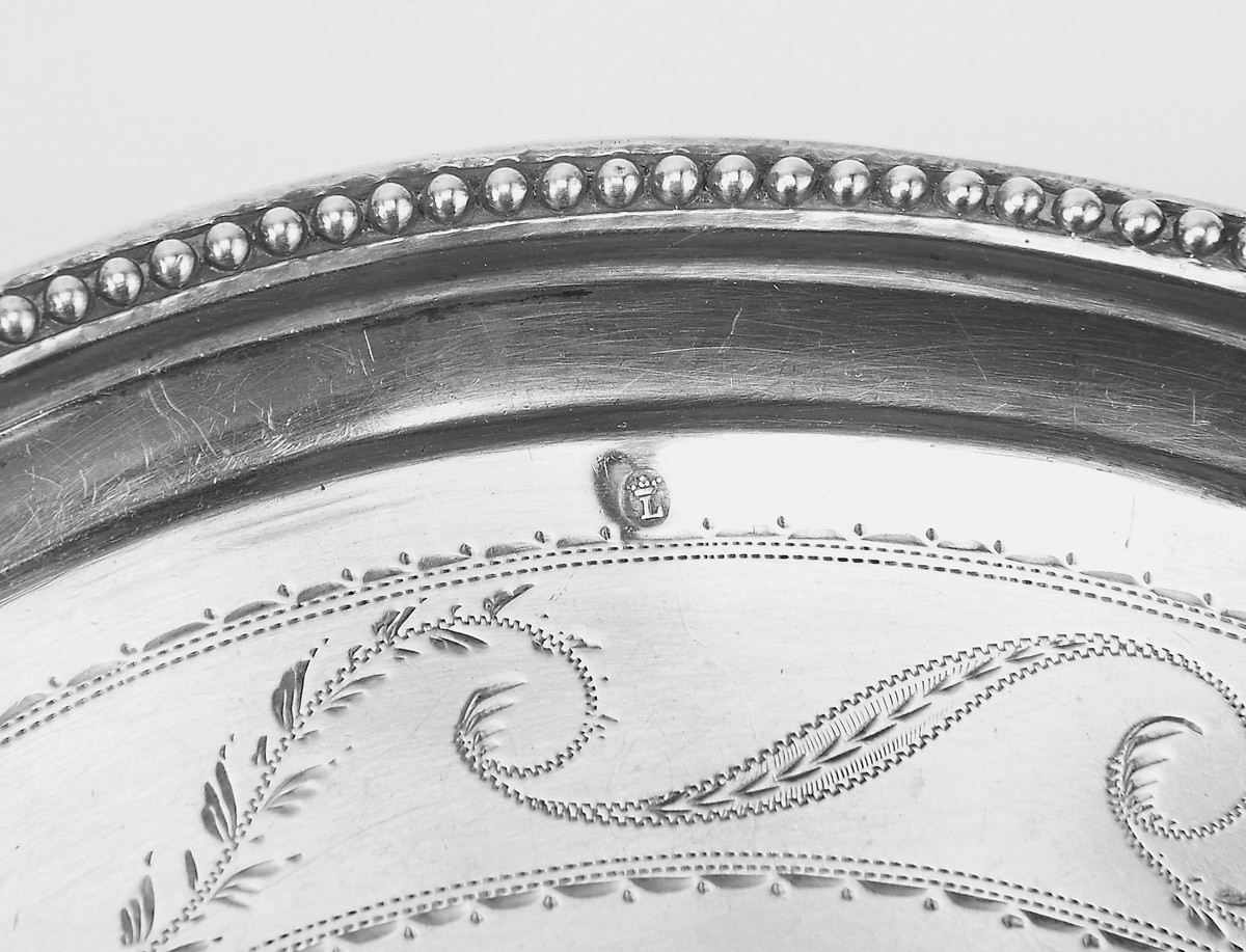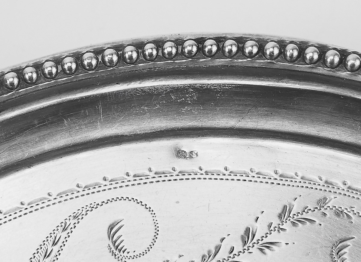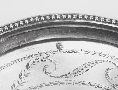 - decoração perlada e gravada "Grinaldas", marcas de ensaiador de Lisboa (1822-1843), marca de ourives CIS (1770-1822)