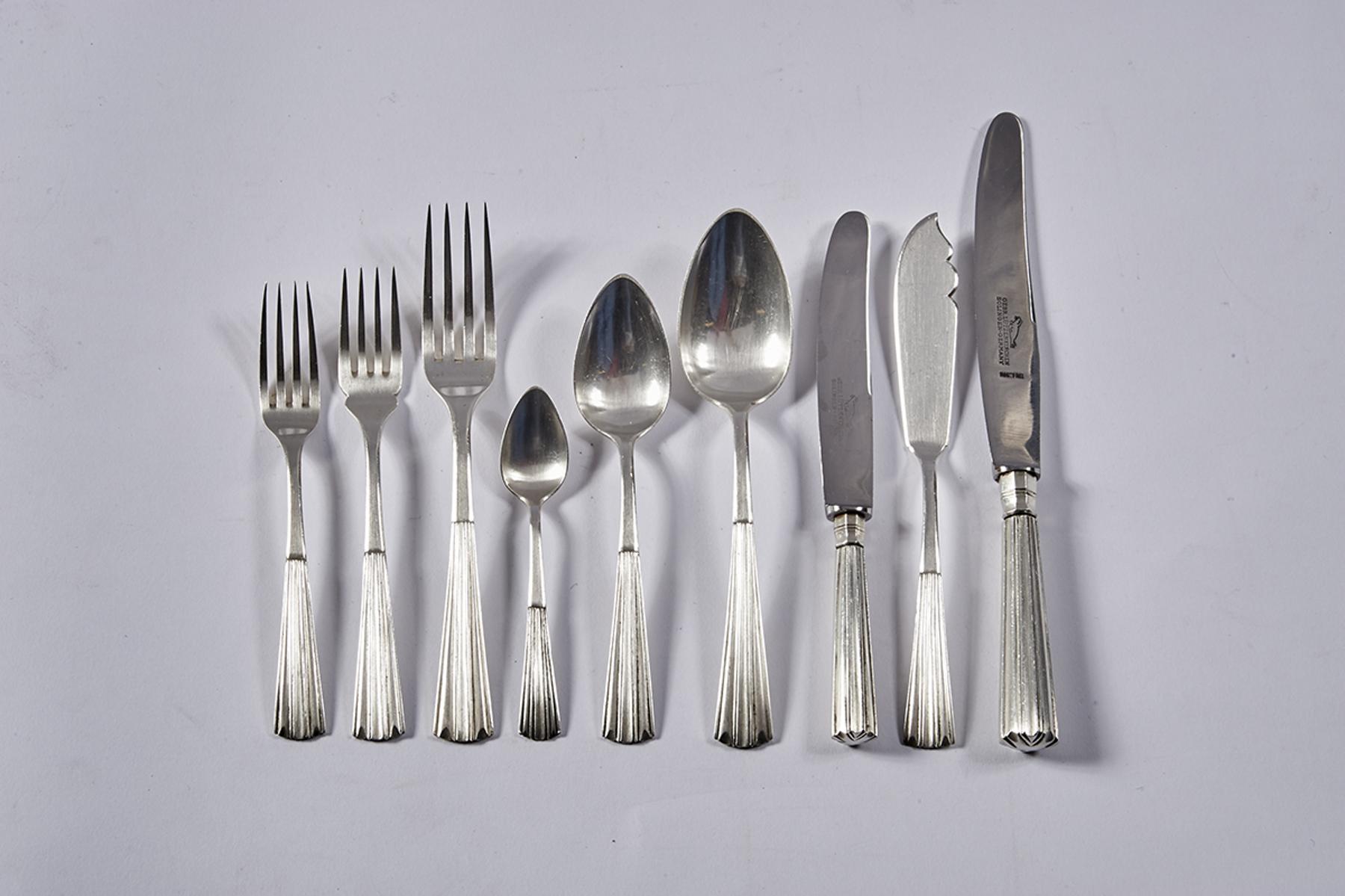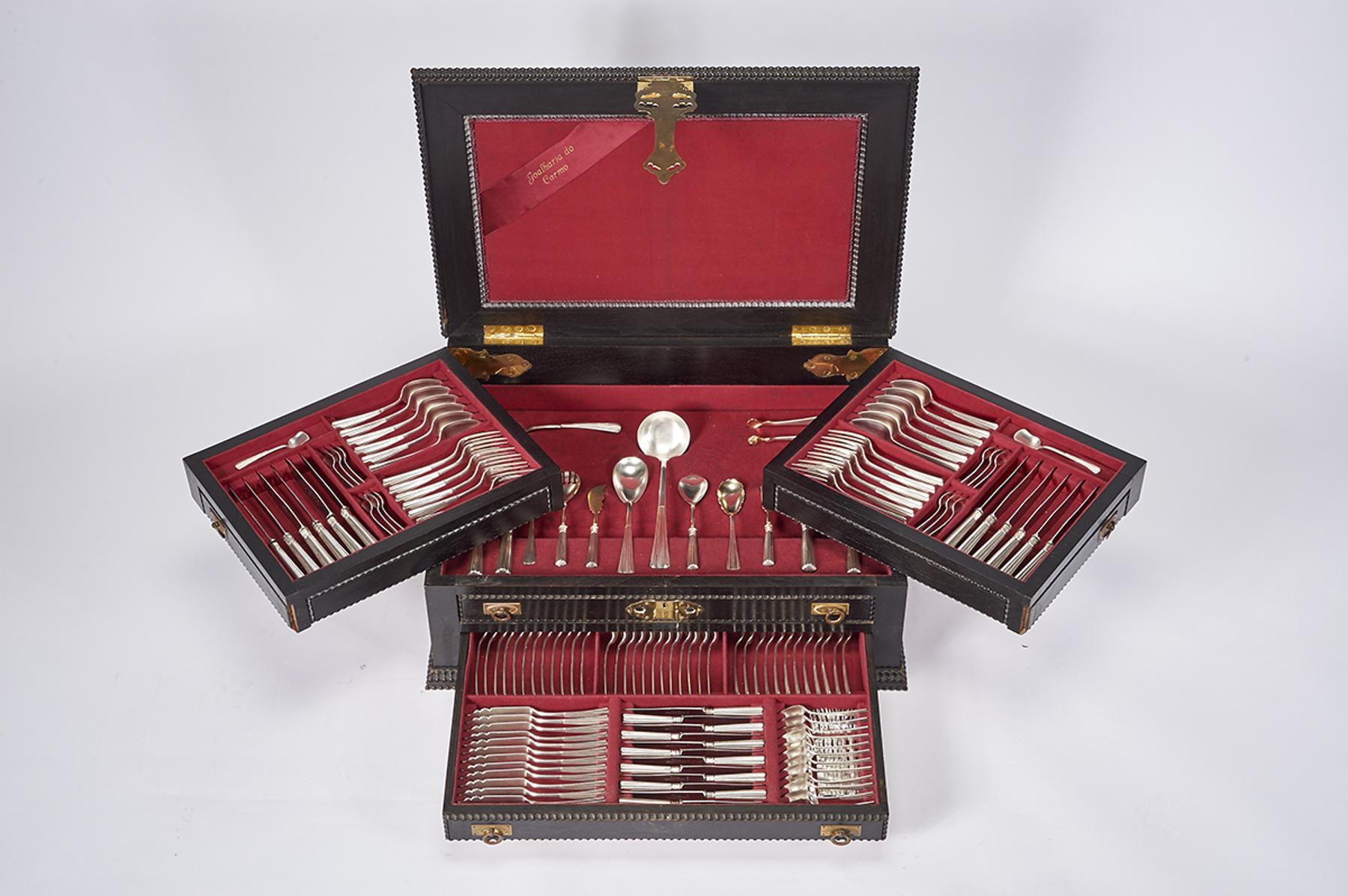 - composto por dezasseis talheres de servir, colheres de sopa, talheres de peixe, de carne e de sobremesa, garfos de bolo, colheres de chá e colheres de café