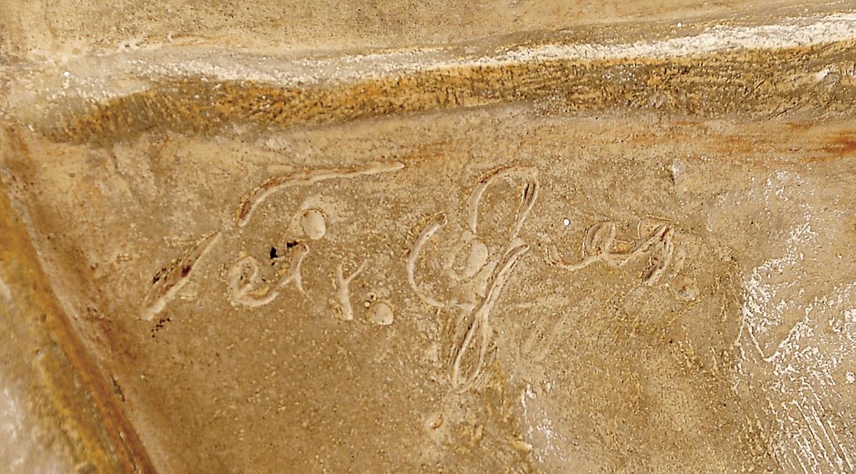 - assinada, autenticada pelo Autor com etiqueta manuscrita colada na base "Autentico Teixeira Lopes", marcada com carimbo da FUNDIÇÃO DE GAYA