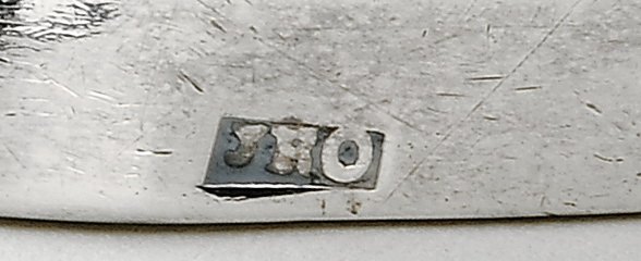 - pega em pau santo, marca de ensaiador de Lisboa (1810-1822), marca de ourives de João Ramos Ortiz (1810-1857)