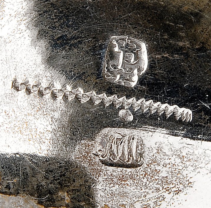 - marca de ensaiador do Porto (1853), marca de ourives AJM (1853)