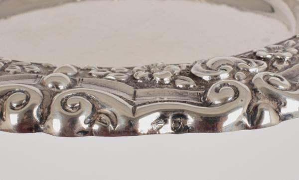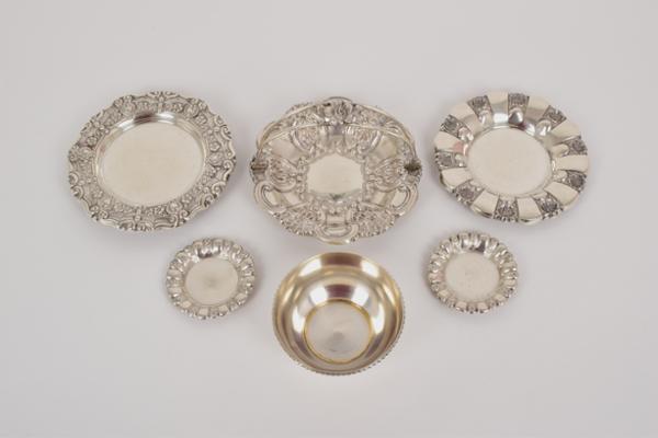 - decorações diversas relevadas e gravadas, composto por quatro salvas, um lavabo e um cesto com asa