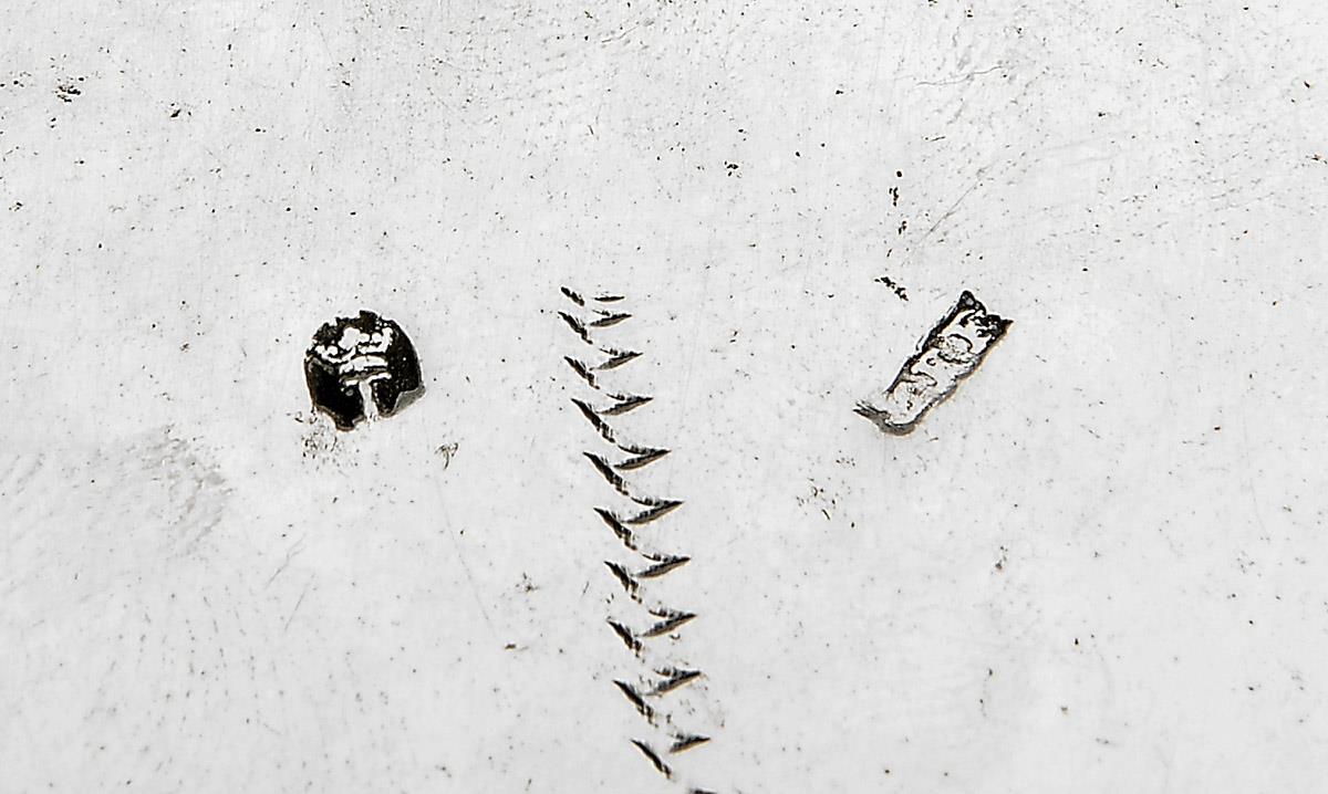 - bordo decorado com friso, fundo liso, marca de ensaiador de Lisboa (1822-1843), marca de ourives EF (?)