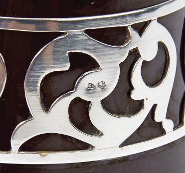 - aplicações em prata, contraste Javali de Lisboa (1887-1937), marca de ourives Ângelo Martins (1903-1939)