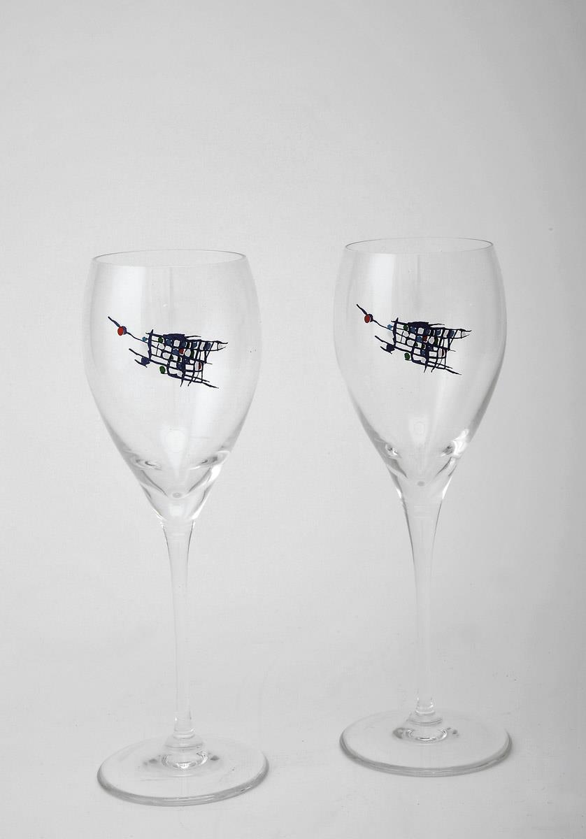 - Garrafa de champagne TAITTINGER COLLECTION e par de copos