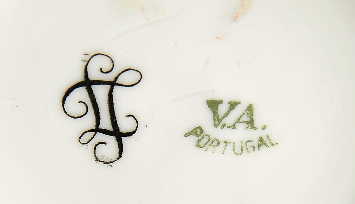 - decoração a branco e dourado, aros em prata dourada, contraste Águia de Lisboa (1938-1984), marca de ourives de LEITÃO & IRMÃO