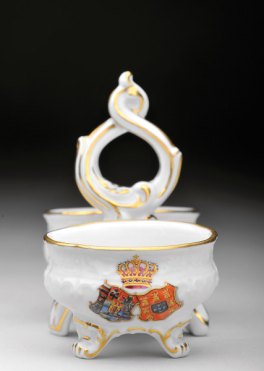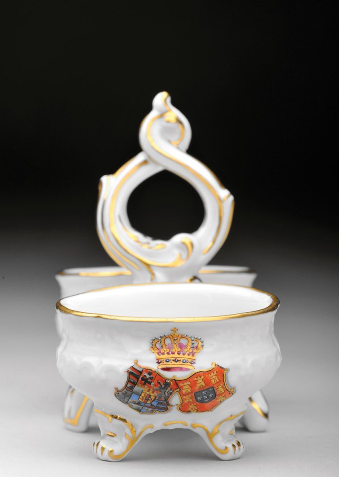gilt decoration with polychromatic Arms of Archduke Karl Ludwig of Austria (1833-1896) and his wife D. Maria Teresa de Bragança (1855-1944), daughter of D. Miguel I,