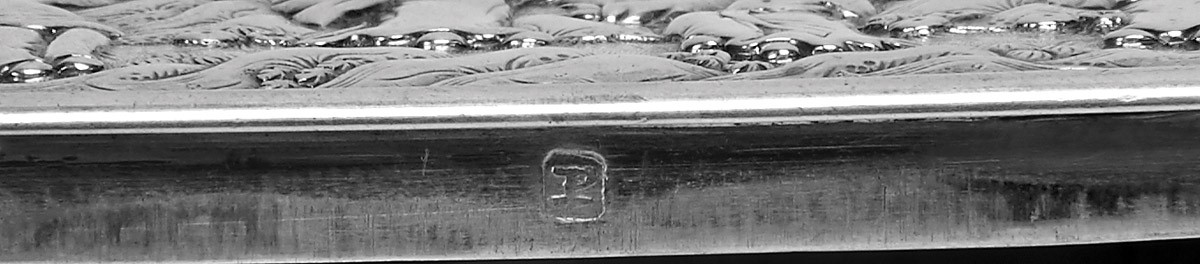 - decoração relevada "Figuras orientais", interior com inscrição "Mrs. Helen Rhind from her affectionate sons Robert and William"