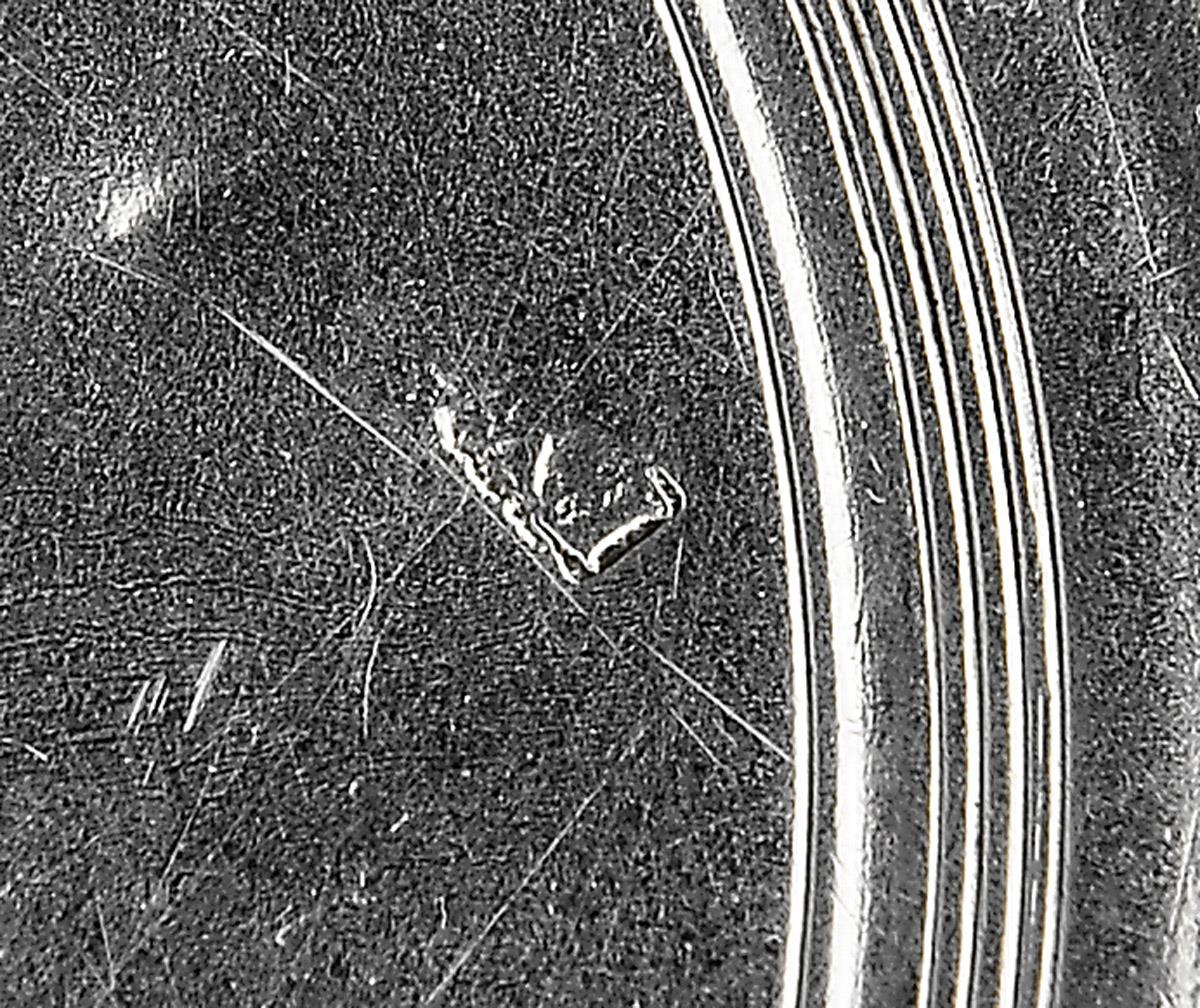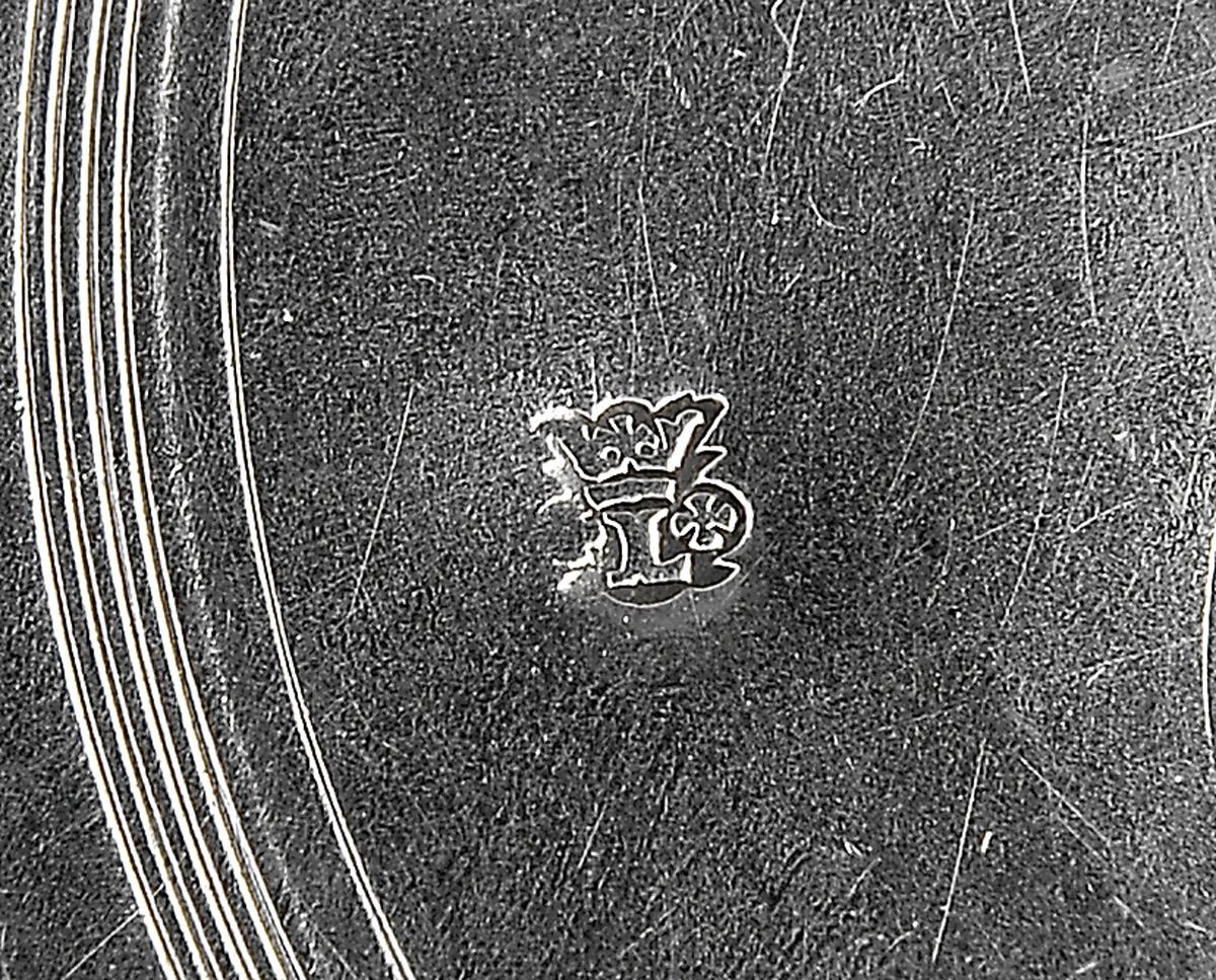 - decoração de frisos concêntricos, marca de ensaiador de Lisboa, marca de ourives FX