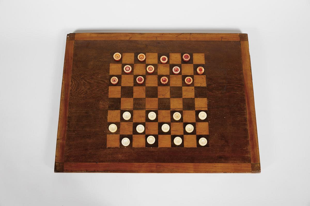 - embutidos em espinheiro, pedras de gamão em marfim e marfim parcialmente tingido de vermelho