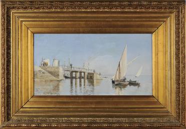 - representa, provavelmente, o cais de Setúbal, uma temática muito tratada pelo Autor, activo entre 1881 e 1930, ◙a maturidade da obra sugere que não deverá ser anterior à decada de 1890. A Cabral Moncada Leilões agradece à◙Dra. Isabel Falcão Teotónio Pere