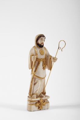 - decoração parcialmente policromada e dourada, bordão em metal dourado