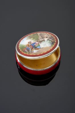 - decoração guilhochada e esmaltada "A inocência", interior da tampa com espelho