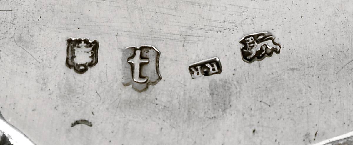 - marca da cidade de Londres (1754-1755), marca de ourives Robert Rew