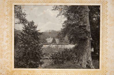 - Álbum contendo 12 fotografias (205x155 mm.) montadas em molduras de cartão, da Quinta do Palheiro, na Madeira, um dos jardins mais famosos da ilha, localizado a leste da cidade do Funchal, a uma altitude de cerca de 500m. Inicialmente propriedade do 1º conde do Carvalhal (1778-1837), em 1885 a quinta foi adquirida pela família Blandy que ainda hoje é proprietária. Álbum organizado em 1901 por ocasião da visita do rei D. Carlos e da rainha D. Amélia, à quinta, a convite de John Burden Blandy, que então ofereceu aos visitantes reais um banquete nos jardins. A Casa Velha, residência de verão primitiva, construída em 1801, é hoje um hotel de luxo. Encadernação original, inteira de marroquim azul e branco, com as bandeiras de Portugal e do Reino Unido, gravadas a ouro e com embutidos no plano superior, que apresenta ainda a seguinte inscrição: Souvenir de voyage, 1901. Palheiro, Madeira.