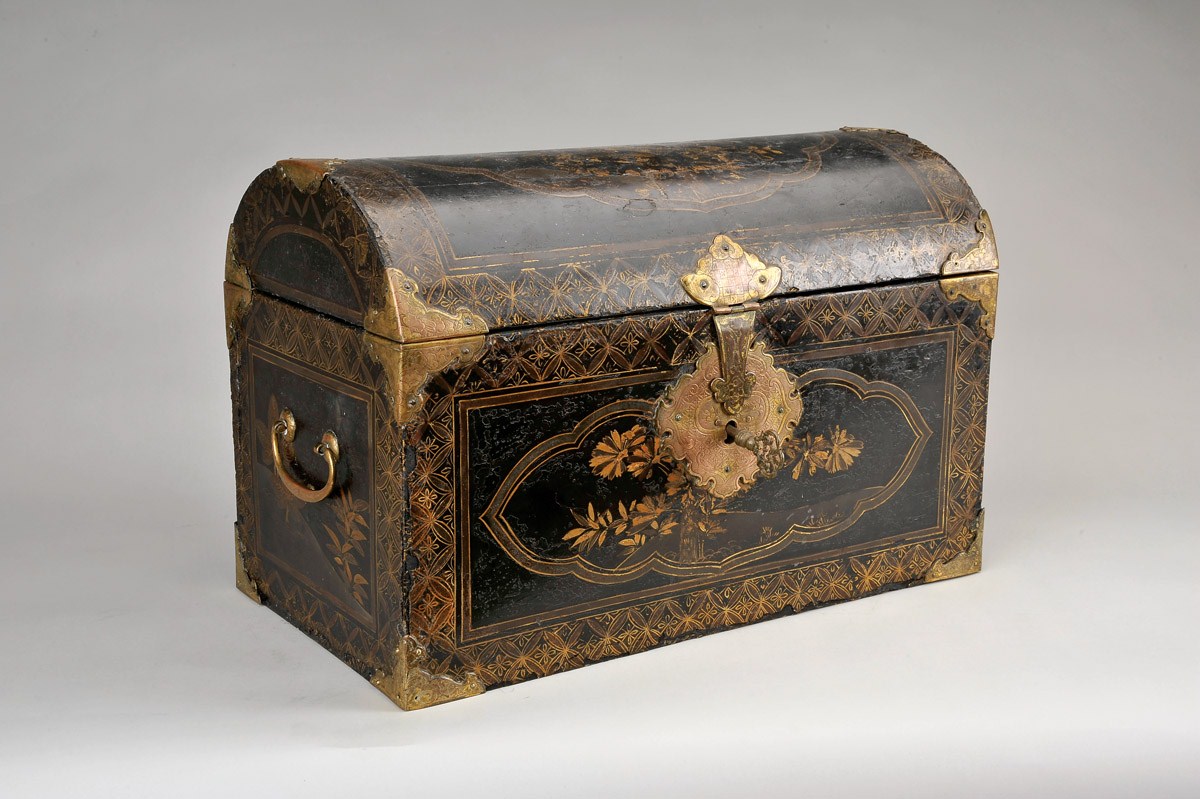 - exemplares semelhantes encontram-se representados em IMPEY, Oliver; JÖRG, Christiaan - "Japonese Export Lacquer - 1580-1850", Hotei Publishing, Amsterdam, 2005, pp. 152-154, nºs 342, 346 e 347.◙A Chest, black lacquer veneered wood with gilt painting ?Flow