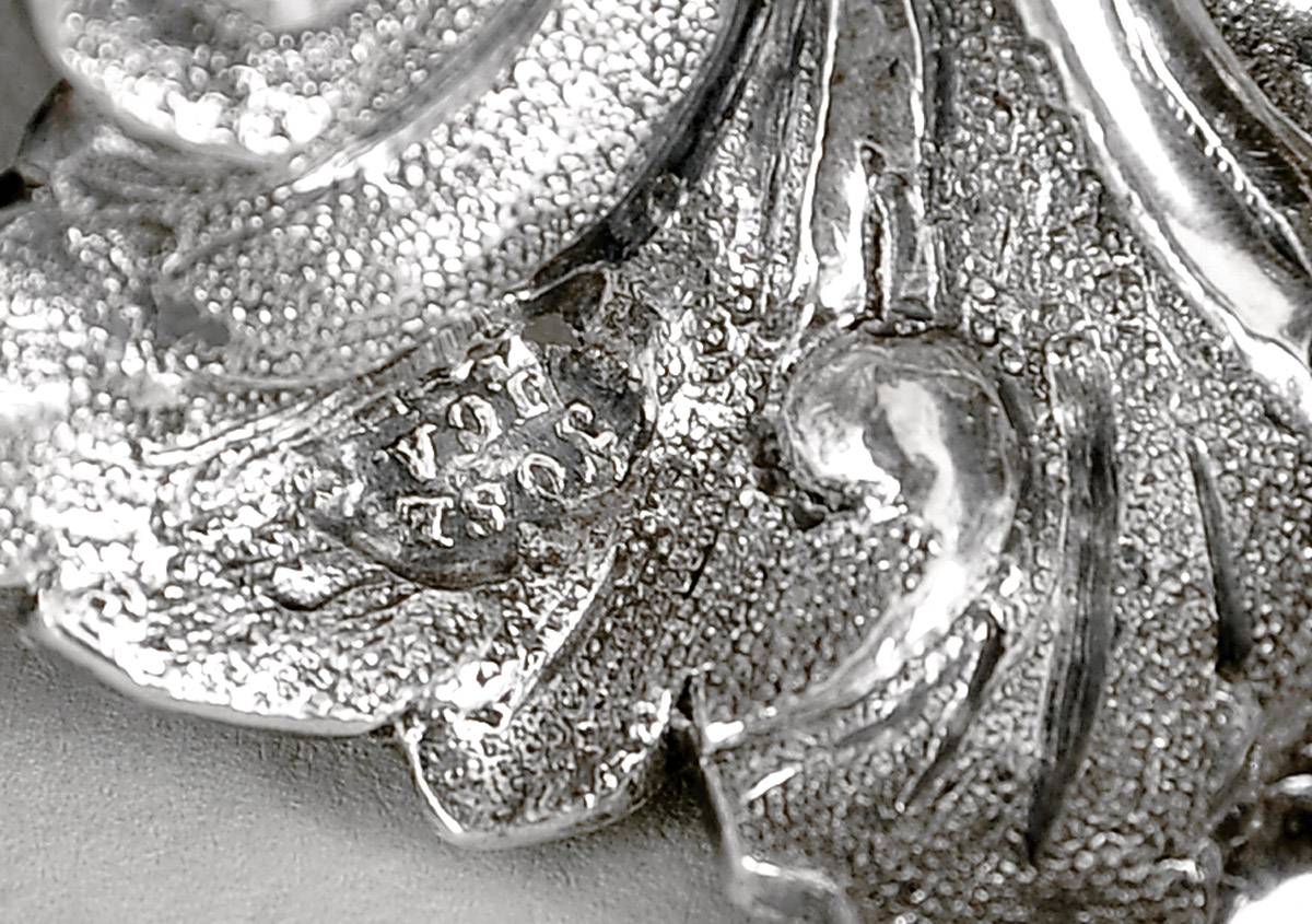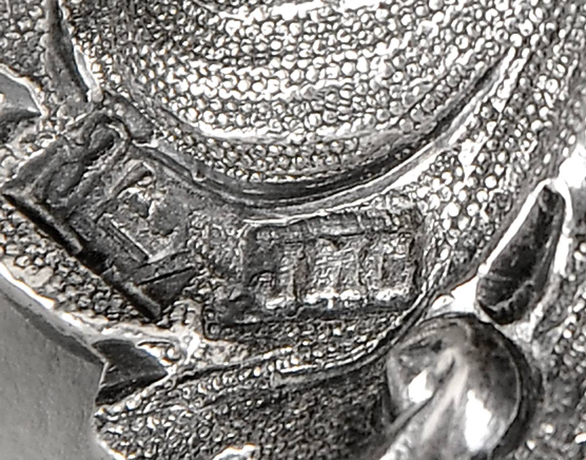 - decoração "Folhagens, troncos e parras", marca de ensaiador do Porto (1877-1881), marca de ourives diversas de José Marques Guedes (1861-1886) e de JOSÉ J.C. A., datável da mesma época