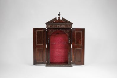 - portas e ilhargas almofadadas com frisos tremidos, interior forrado a tecido