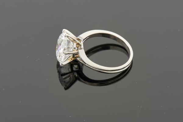 - cravejado com diamante de talhe de brilhante com o peso aproximado de 5,45 ct. (11,3 x 6,6mm), grau de cor F~G e qualidade segundo certificado VS