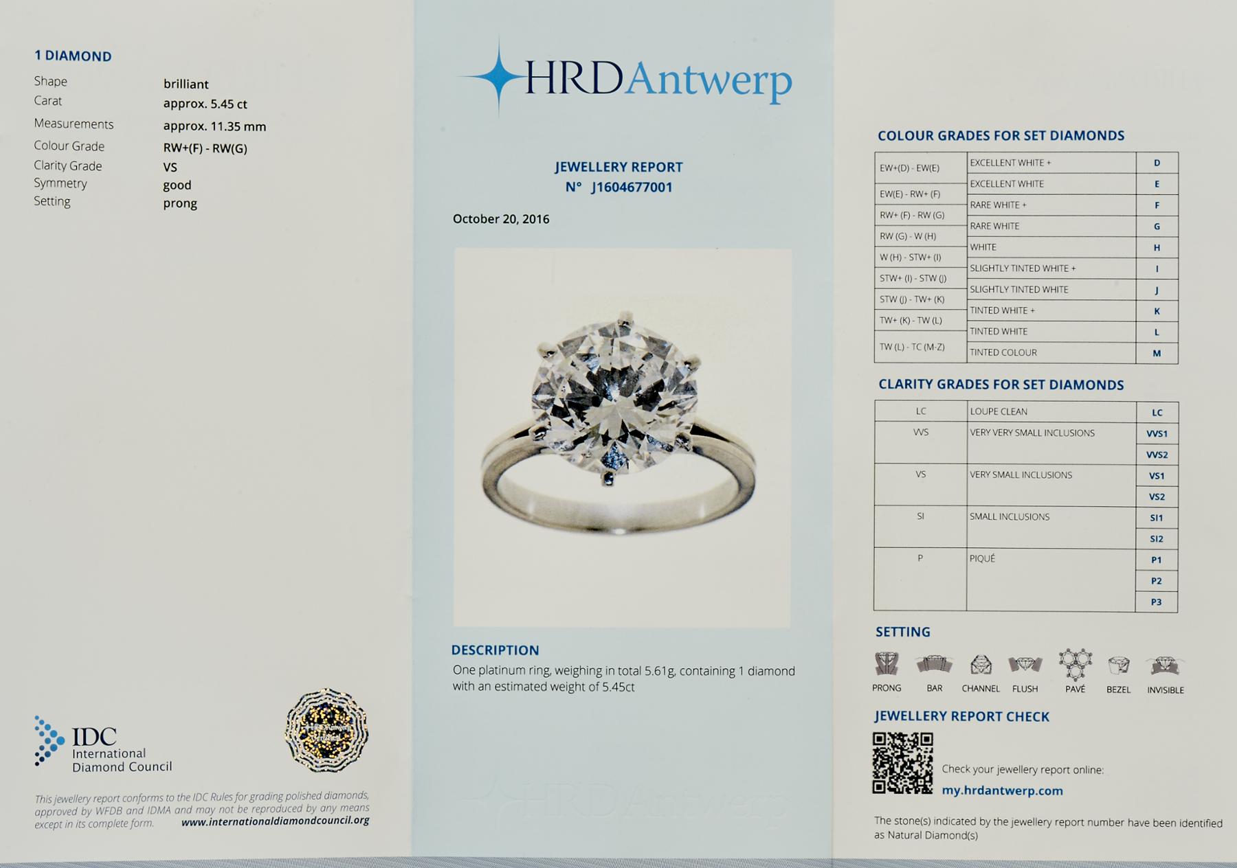 - acompanhado de certificado emitido por HRD Antwerp, nº J1604677001.