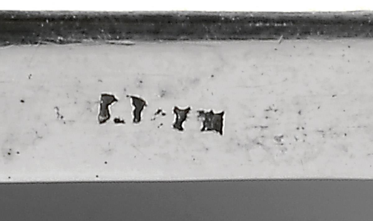 - decoração relevada e gravada, marca de ensaidor de Lisboa (1843-1870), marca de ourives de António Gomes da Silva (1810-1843)