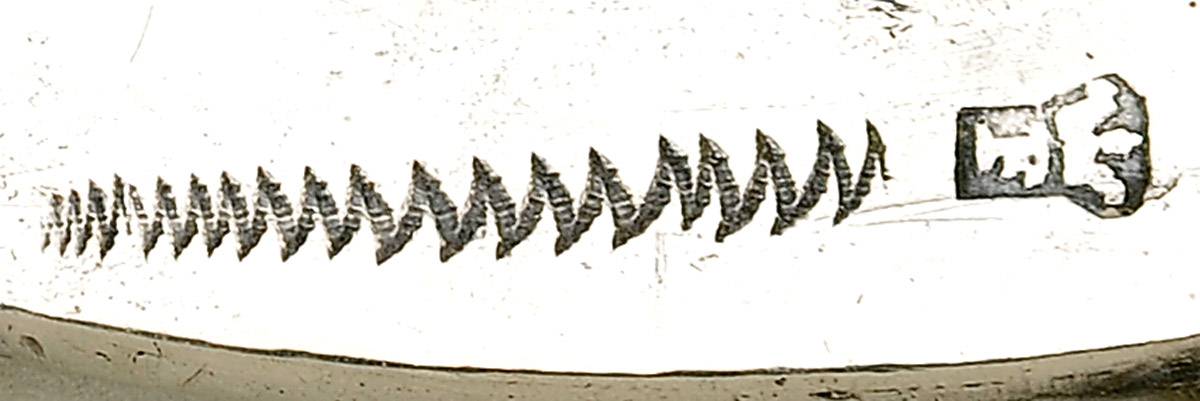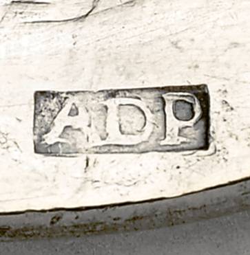 - bordo ondulado com decoração "Concheados", marca de ensaiador de Faro, marca de ourives ADP