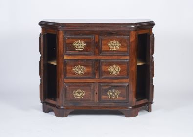 - frente e laterais almofadadas, ferragens em metal amarelo