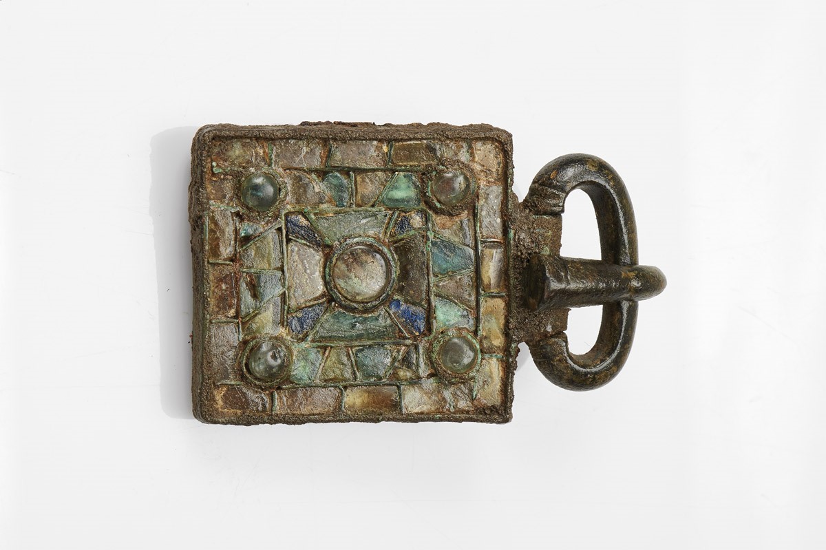 - cravejada com vidros coloridos de diversas tonalidades, Visigótica, séc. VII