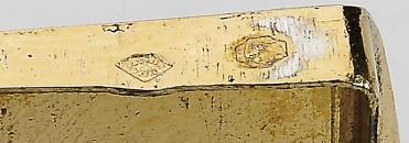 - decoração guilhochada, marca de garantia da cidade de Paris, marca de ourives de Frontin-Rufie