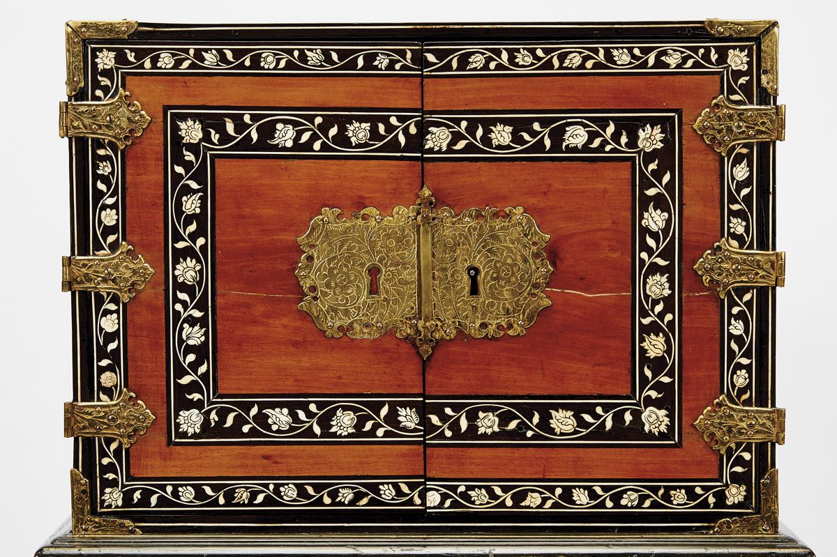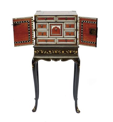 - sândalo, faixas embutidas em marchetaria de ébano e marfim "Flores e desenhos geométricos"