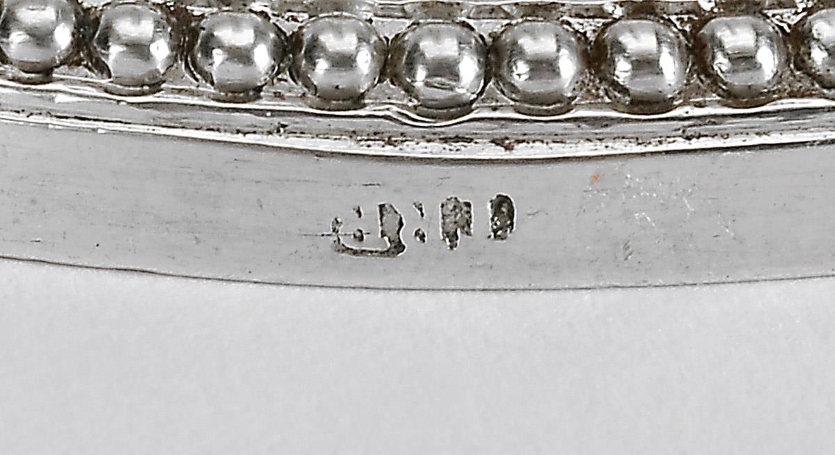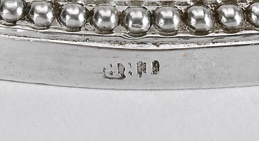 - decoração gravada, marca de ourives de Lisboa de Timótio Ribeiro Raposo (1792-1804)