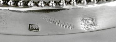 - decoração perlada e gravada "Grinaldas", marca de ensaiador do Porto (1792-1803), marca de ourives de Francisco Xavier de Carvalho Silva (1793-1822)