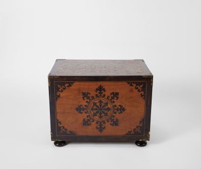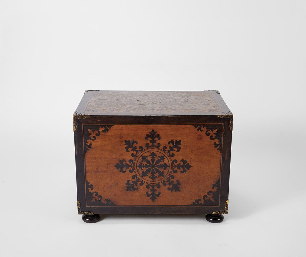 - revestimento parcial e embutidos de ébano, ferragens em cobre com restos de dourado