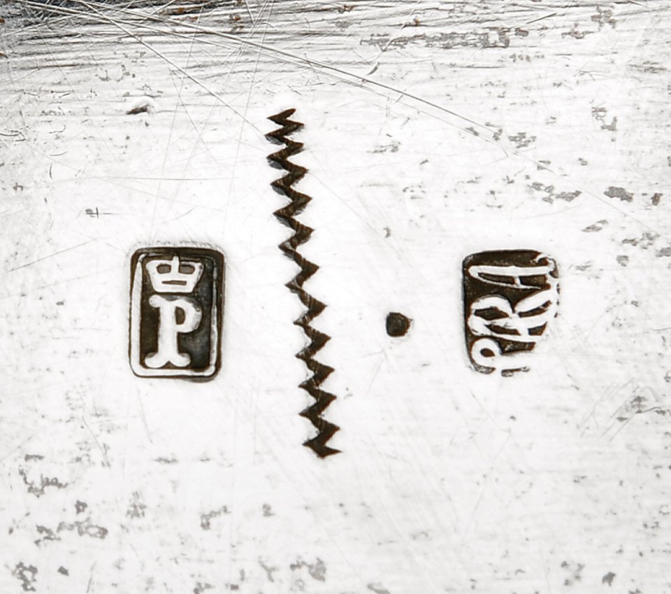 - decoração canelada e relevada "Flores", marca de ensaiador do Porto (1836-1843), marca de ourives LARA (1836-1853)
