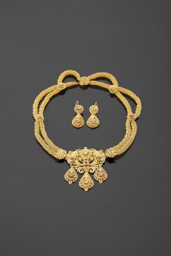 - Dim. - 40 (gargantilha); 3,5 (brincos) cm; Peso - 52 grs.