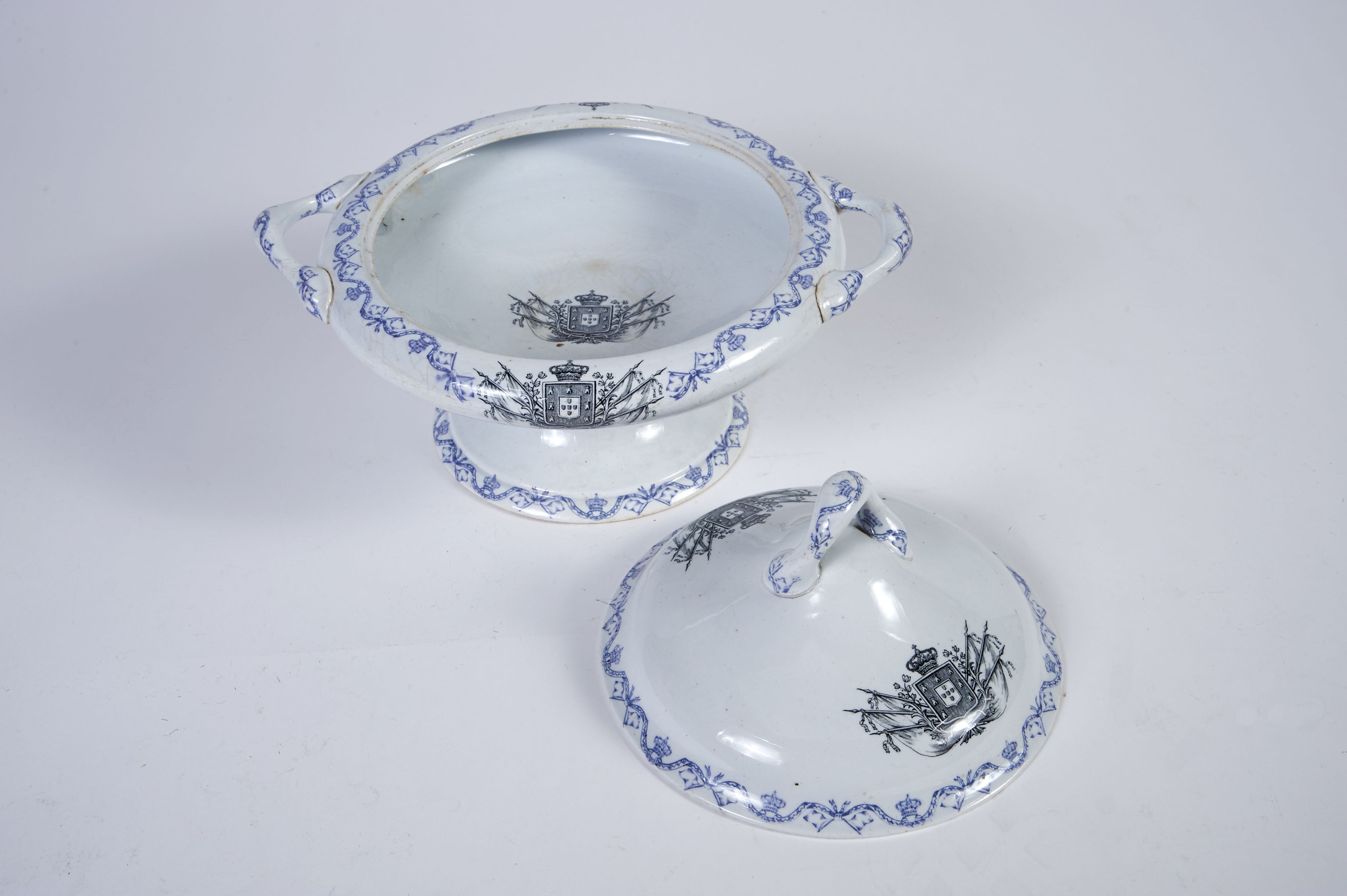 - decoração a negro e azul "Armas de Portugal sobre troféus"