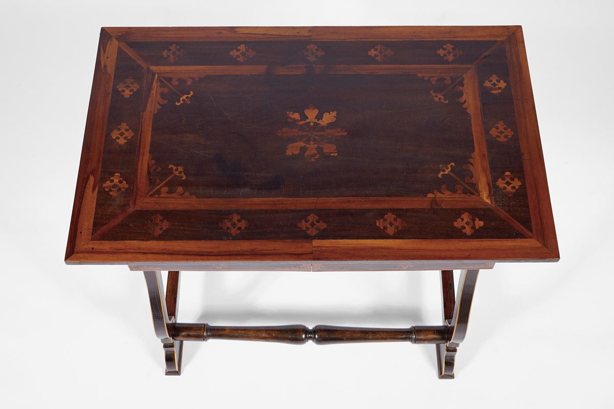 - pernas e travejamento lateral em pau-santo com embutidos e filetes de pau-cetim