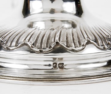 - decoração relevada "Flores", contraste Javali do Porto (1887-1937), marca de ourives de José Joaquim Monteiro (1902)