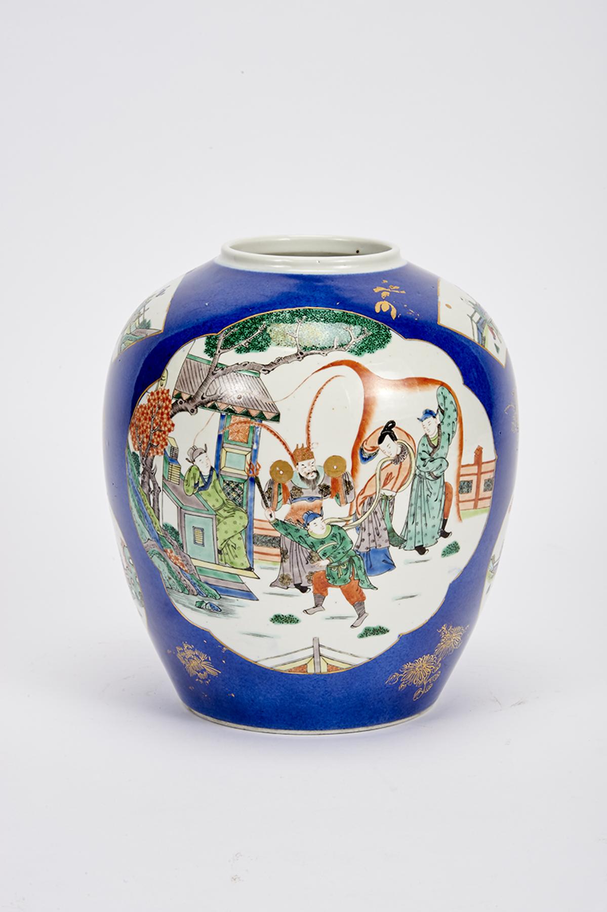 - decoração a azul e dourado, reservas policromadas "Figuras orientais"