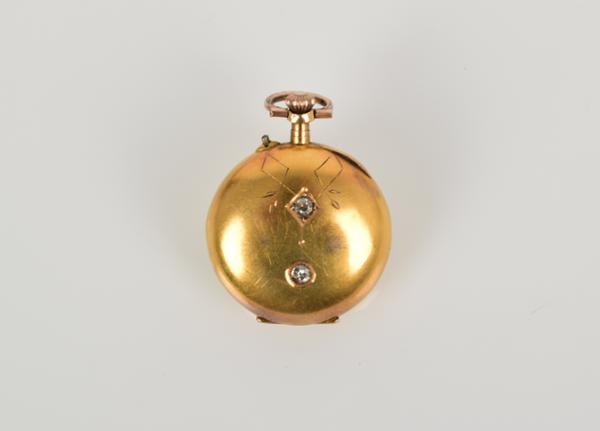 - cravejado com diamantes em talhe antigo de brilhante, movimento mecânico.