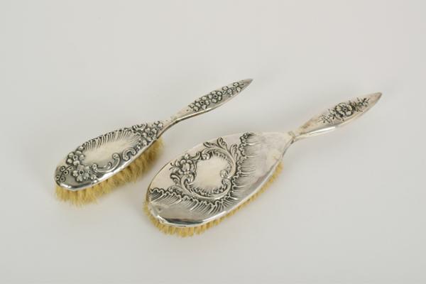 - cabos em prata relevada de 833/1000 com decoração relevada "Flores"