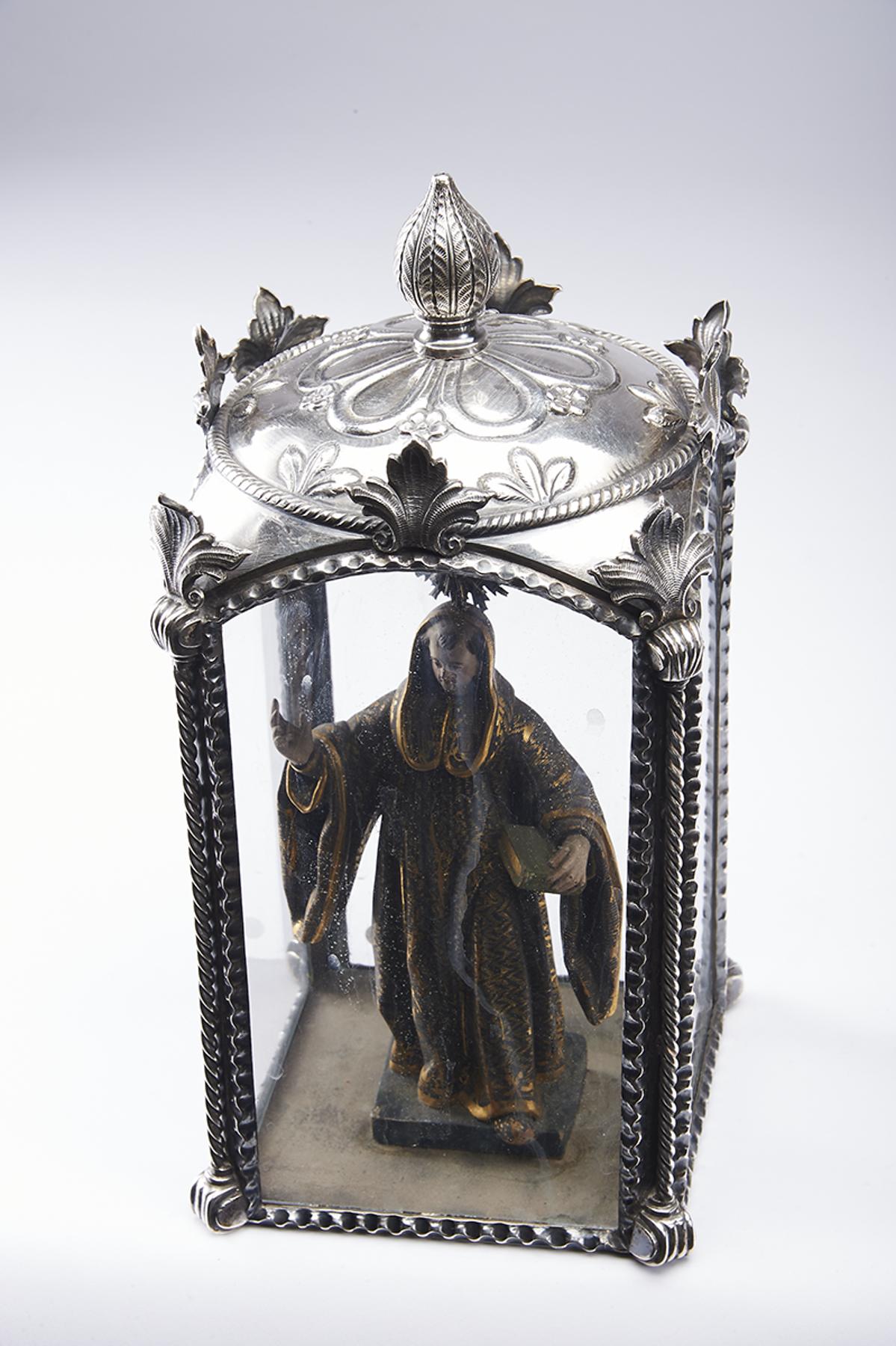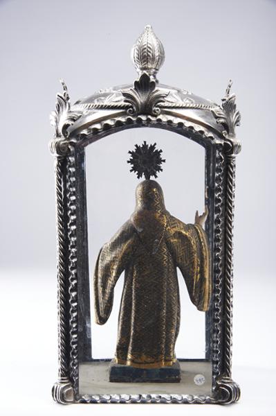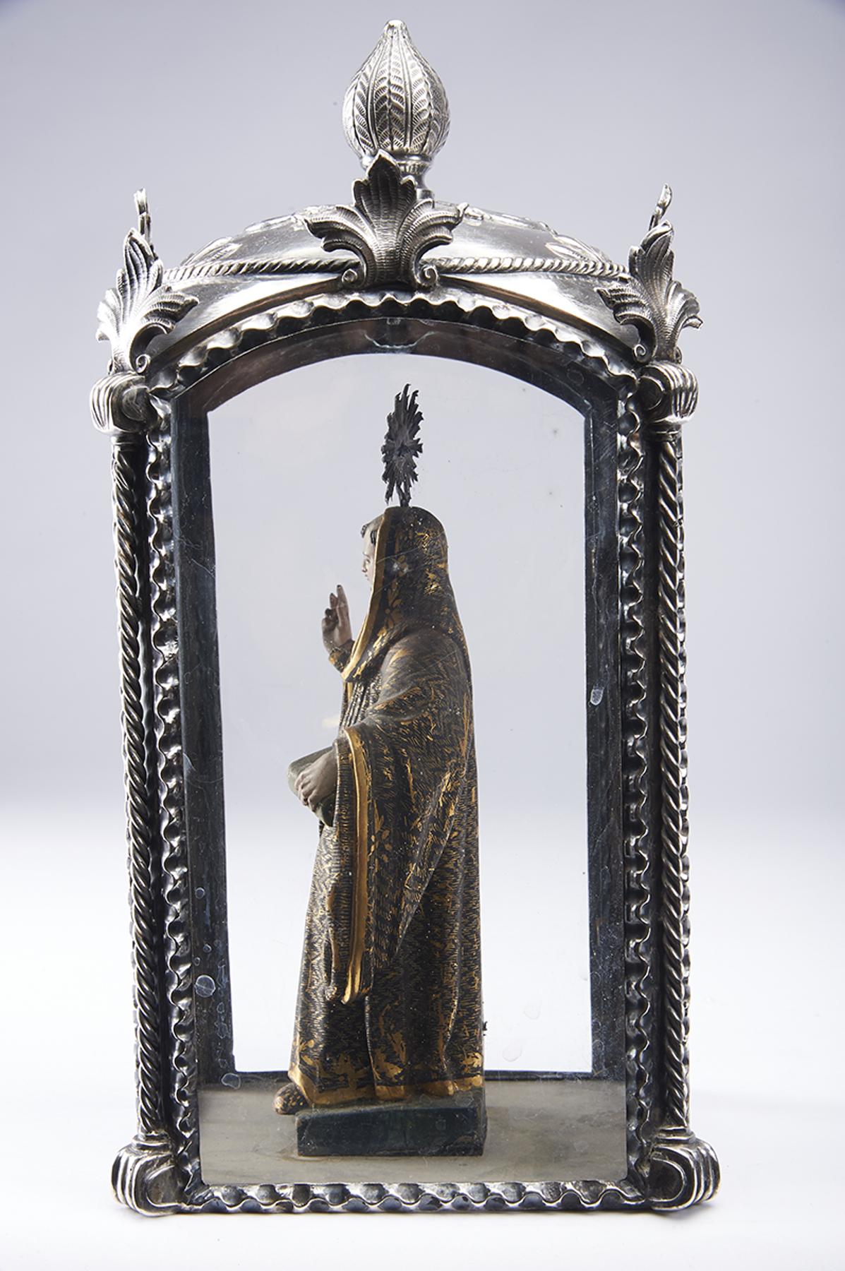 - Dim. - 15 cm (escultura); 28 x 14 x 14,5 cm (maquineta) cm
