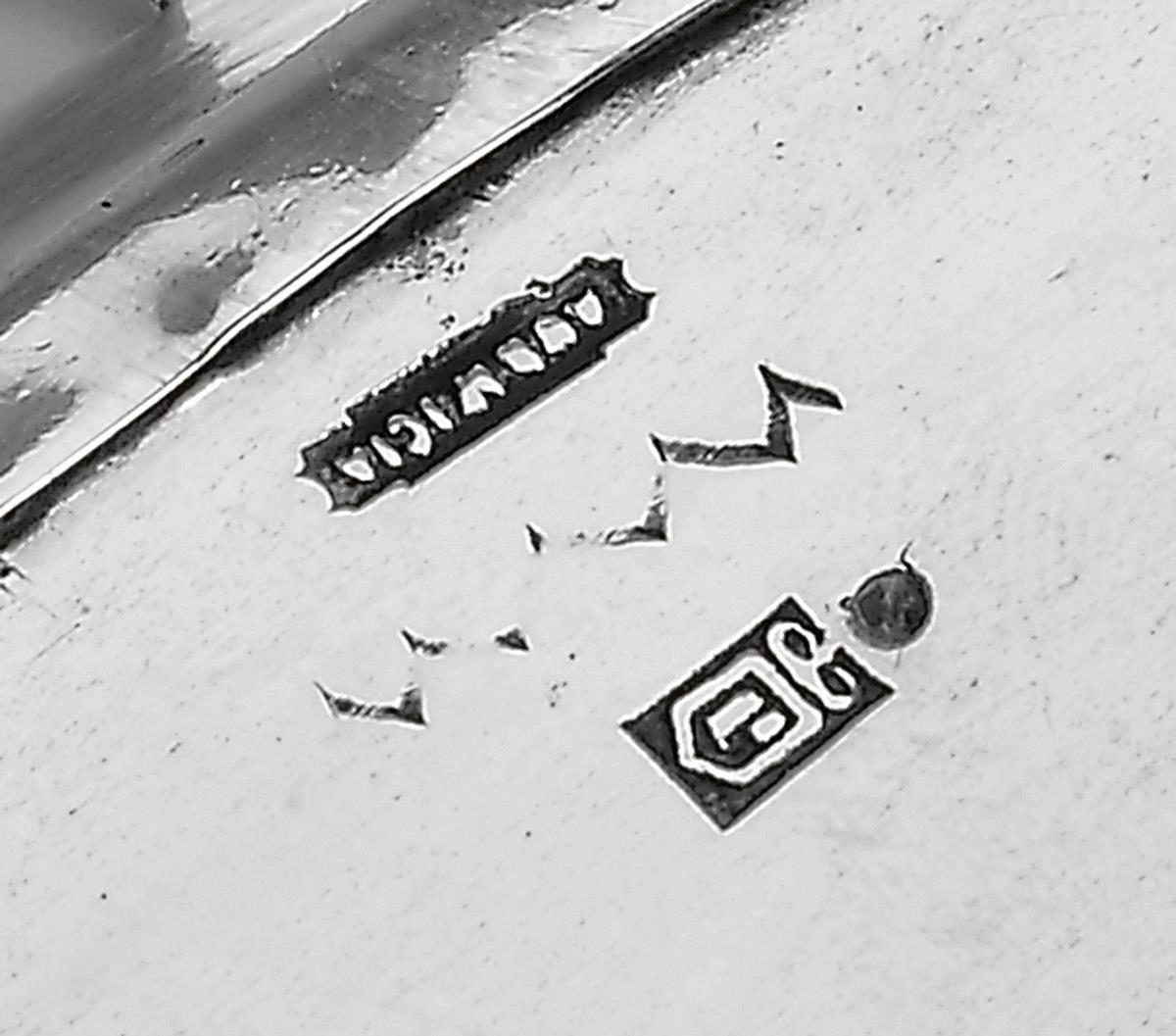 - fundo gravado, marca de ensaiador do Porto (1870-1877), marca de ourives AURIFÍCIA (1870-1881)