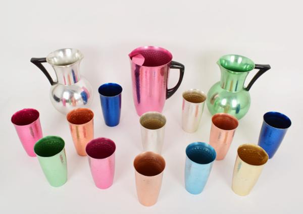 - decorações diversas, composto por 3 jarros, 11 copos martelados e 5 copos lisos