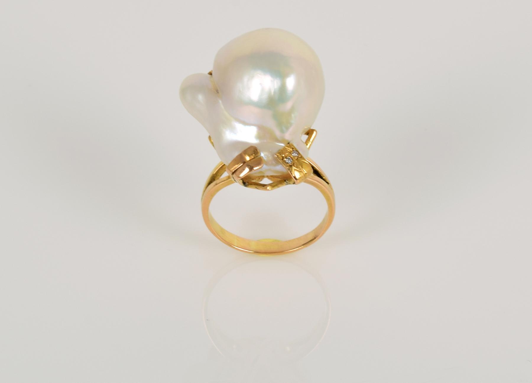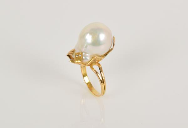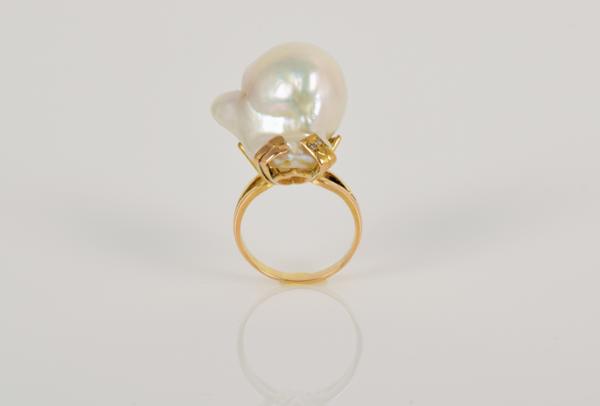 - cravejado com pérola barroca e dois diamantes em talhe de brilhante