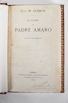 - O crime do Padre Amaro.- Edição definitiva.- Lisboa: Typographia de Castro Irmão, 1876.- [8 (aliás 6)], 362 p.; 20 cm.- E.