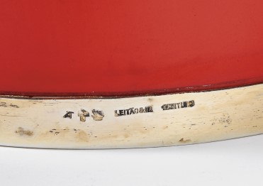 - decoração monocroma a vermelho, aro e tampa em prata dourada com contraste Águia de