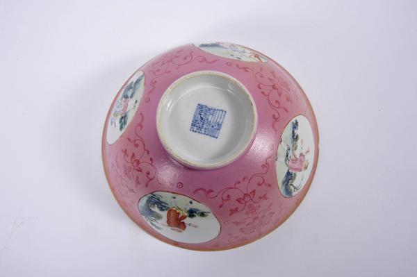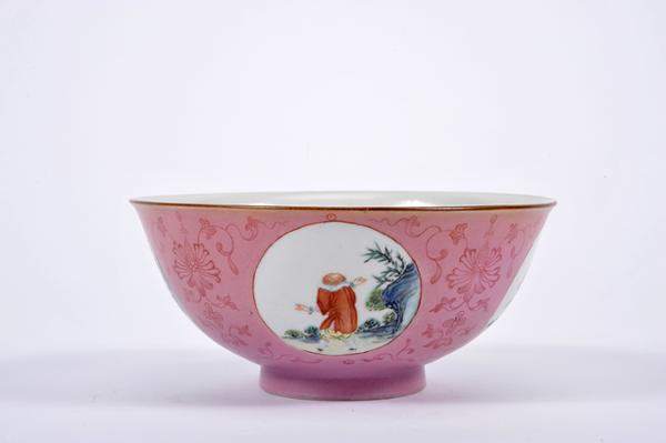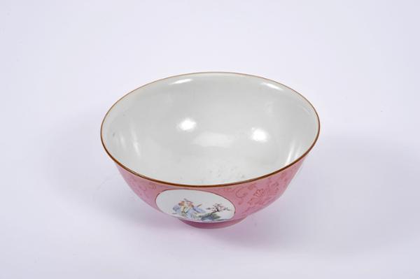 - decoração com reservas policromadas sobre fundo rosa "Figuras europeias"